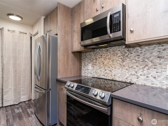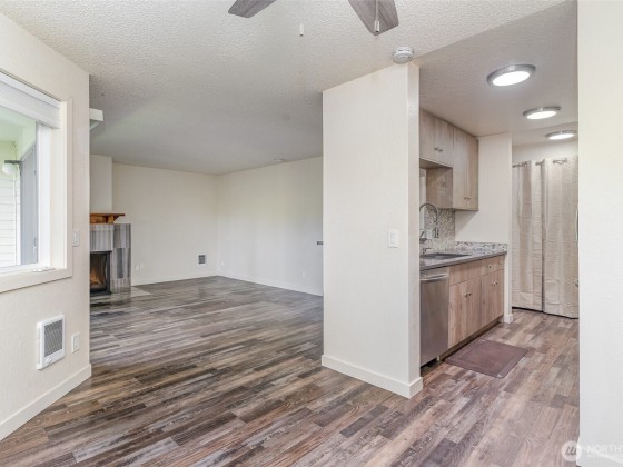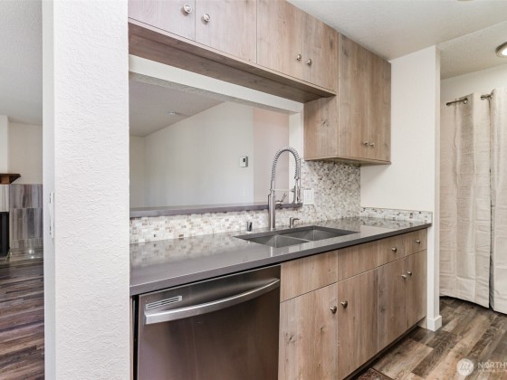 Investors! Immediate income with this fabulously updated condo that is conveniently close to everything! Complete interior remodel in 2021 with vinyl plank floor, quartz counters, new appliances, extra cabinets in kitchen and bath, paint, updated fireplace, carpet in bedrooms, doors & trim. All appliances included. Spacious deck w/locked storage cabinet; community lawn area. Located just steps from the Cross Kirkland Corridor Trail and less than 1 mile to Kirkland's waterfront with shops and restaurants in between. Less than 1 mile to Google/Facebook/ Microsoft. New roof in 2024, low HOA dues! Investors and new home owners- property is subject to tenant rights, lease expires April 2026. Photos were taken before current tenant occupied.