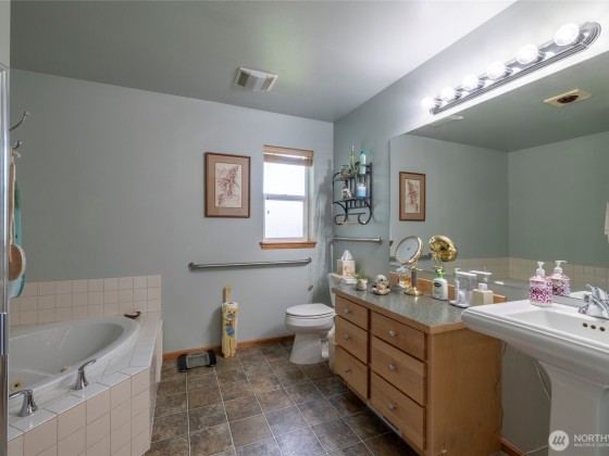Beautiful one-owner custom home in desirable Baycrest! Built in 2005, this thoughtfully designed 4-bed, 2.5-bath home offers a main-floor primary suite with jetted tub, walk-in closet, and full wheelchair accessibility—36” doorways and a ramp from the 3-car garage. Enjoy an inviting living room with gas fireplace, open dining area, and spacious kitchen filled with natural light and ample storage. Upstairs features three bedrooms, a full bath, and a large bonus/rec room perfect for entertainment or hobbies. The fully fenced backyard includes a patio, manicured landscaping, and space for gardening or play. Located near Birch Bay beaches, state park, local shops, and well-kept neighborhood that shows pride of ownership throughout!
