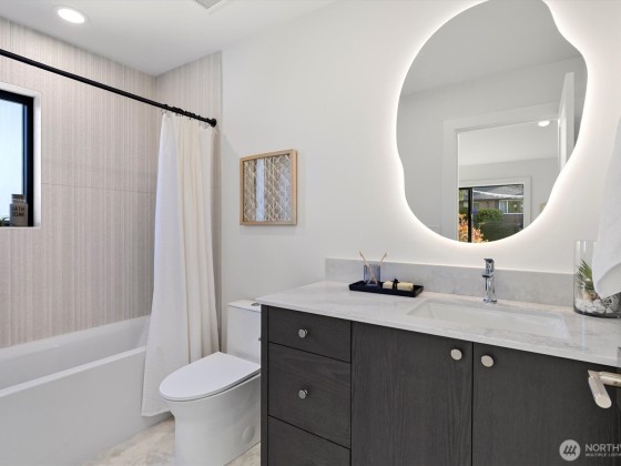 This extraordinary Magnolia residence blends timeless luxury with impeccable craftsmanship. Light-filled living spaces and designer finishes create effortless elegance. The gourmet kitchen with a custom island flows into the inviting great room and covered deck for year-round enjoyment. Upstairs, the lavish primary suite offers a spa-like bath and private balcony, while two additional bedrooms each feature their own en-suites. The lower level includes a rec room with wet bar, extra bedrooms, and access to the backyard. Detached garage off alley. A true NW Contemporary masterpiece. Close to Discovery Park, shops, dining, and more—Magnolia living at its finest.