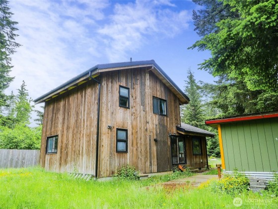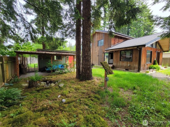 Short Sale - Stunning designer home on a huge 15,600 sq ft fenced lot! This home features a bright open floor plan, vaulted ceilings, massive windows, and a remodeled kitchen and baths. Main-level primary suite with ensuite, plus a cozy gas stove for cool nights. Upstairs offers a spacious family room, 2 bedrooms, and a full bath. Enjoy total privacy, mature landscaping, and a charming mini shop—perfect for an office or art studio. Tons of parking for RVs, boats & toys, plus power stations for RV or EV charging. Style, space & upgrades galore—this rare gem has it all!All offers are subject to lender review.