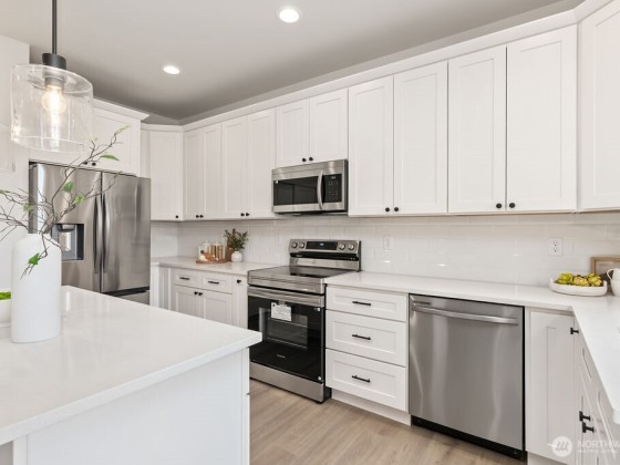 Presale New Construction – Estimated Completion 12/31/2025! Modern 3-bedroom, 2.5-bath home featuring an open-concept with durable wood-style flooring, spacious living room and a well-designed kitchen w/ quartz countertops, pantry, and island. Upper floor offers a primary suite w/ private bath and walk-in closet, plus two additional bedrooms and laundry room. Enjoy outdoor living with a covered front porch, rear patio, and fully fenced yard. Heat pump with A/C, oversized garage. No HOA. Buyer can still choose interior paint colors w/optional upgrades at additional cost. 1 year standard Builder warranty. Prime location-minutes to I-5, schools, Chambers Bay, Pointe Ruston dining and entertainment. Secure this home now before completion.
