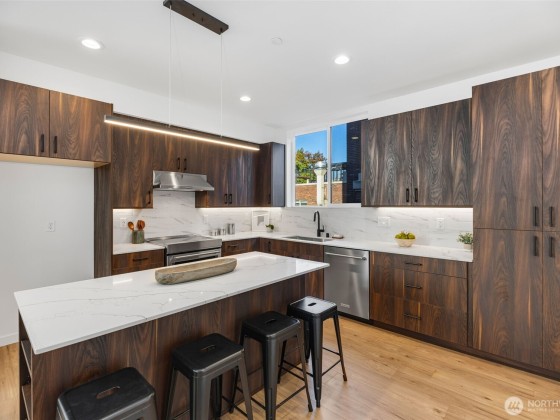 Luxury Townhomes in the heart of Queen Anne neighborhood. Elegance abounds, Clean Modern Finishes, Soaring Ceilings w/windows to match. 3Bed/3Bath, 1 Car Attached Garage, EV Ready. Main level offers open floorplan, walk out balcony extends entertaining space. Chefs kitchen features tons(!) of cabinet space, quartz counter tops, seated island, Induction Range. Top level Primary Suite w/en-suite Bath, walk-in closet & walk out balcony. Lovely territorial & mountain views of the surrounding neighborhood from the entertainment size Roof Top Deck (peek-a-boo view of the Space Needle!).Walk to shopping, coffee shops, dining & parks. Quick access to major commuter routes. Completion October 2025. 4 Star Built Green. Ask about $30k buyer bonus