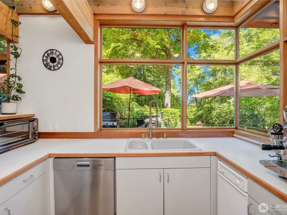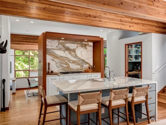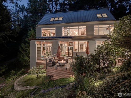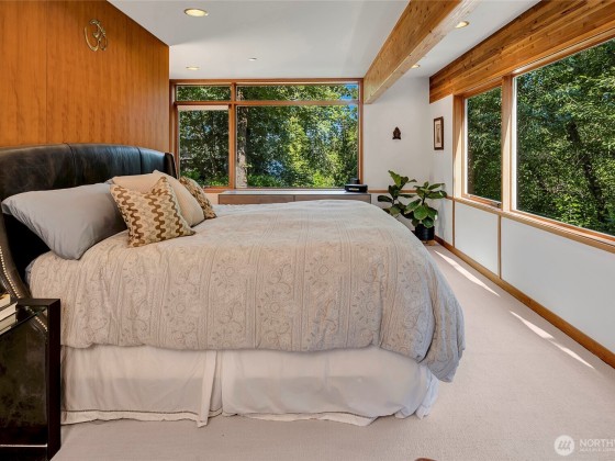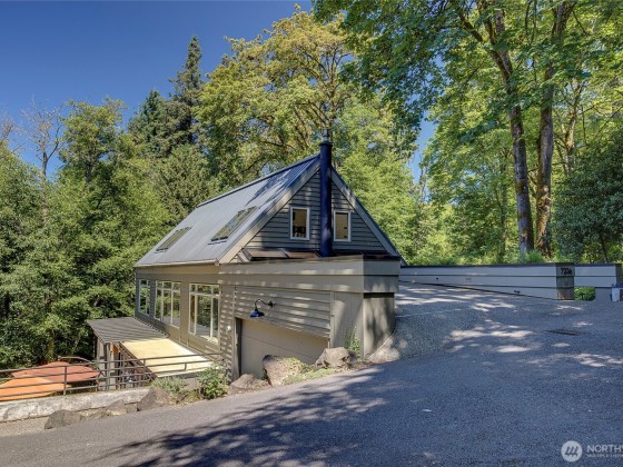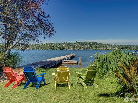 Experience the epitome of Pacific Northwest living w/34 feet of no-bank waterfront shared with just 1 neighbor plus 100 foot dock. This custom-designed Jim Cutler masterpiece is an architectural gem by the renowned mind behind Bill Gates’ home. Classic & timeless, the residence features VG fir-trimmed walls of windows that dissolve the boundary between indoors & out. So much privacy, no need for blinds. Sophisticated entertaining space combined w/cozy family areas. Dream all weather deck. Short path leads to the water. Hop on the boat, paddle board or just soak up the sun with western exposure. Tucked away in tranquil privacy yet moments to the S'End shopping center, Beach Club, & schools. NOT cookie cutter! This is quiet luxury with soul.