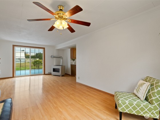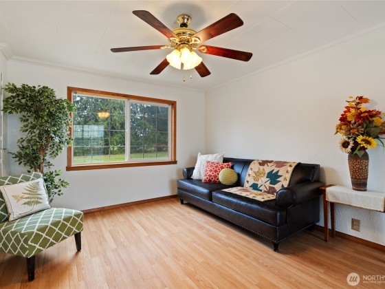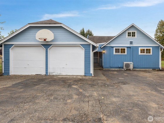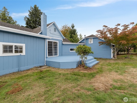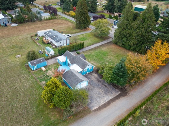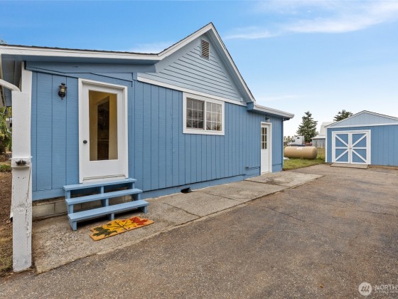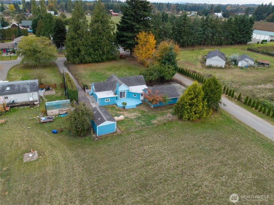 Charming one level living nestled on nearly a half acre with county vibes & proximity to I-5! Move-in ready with fresh interior & exterior paint, attractive floors & an attic & crawl-space revamp! Mini-splits & a propane heater make for efficient, cozy winter nights & comfortable summer days. Oversized kitchen with ample storage, gas range, dining room & walk-in pantry. Laundry/mud room with a utility sink off the kitchen & access to the outside makes gardening & projects easy. Additional finished space in the attic allows for room to grow & expand. Massive front yard for fun, games and room to roam.Fully fenced back area with gated entry,large private deck off the living room,additional concrete floor shed, fruit trees & so much potential!