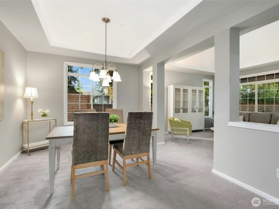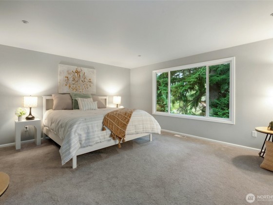 Tucked at the end of a private drive, this peaceful Newport Hills residence offers both comfort & elegance. Vaulted ceiling & skylights fill the space with natural light, highlighting the fresh interior paint & newer carpet. The open-concept family room flows into a chef kitchen with SS appliances and expansive granite countertops. Formal living & dining rooms provide spaces for entertaining, and the 3-car garage offers plenty of storage.Upstairs features 5 beds and 2 full baths, a updated 5-piece primary suite. Enjoy peace of mind with a new AC system, whole-house generator & residential fire sprinkler system. Close by top-rated Bellevue schools, parks, trails, and easy freeway access.Perfect balance of serenity & convenience.