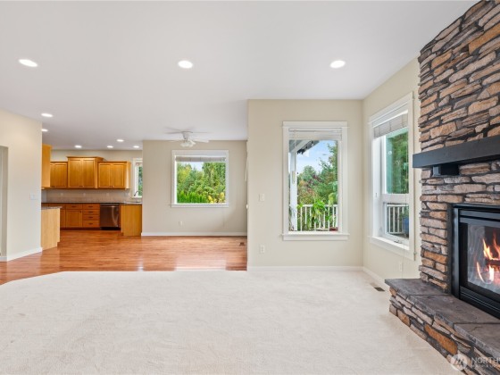 Tucked away on a quiet street, this 3-bed, 2.5-bath home offers privacy, space, and comfort on an incredible 17,000+ sq ft lot. With 2,250 sq ft of living space, the home feels bright and inviting throughout, featuring an open floor plan, granite kitchen counters, and stainless appliances—all included. A cozy gas fireplace warms the main living area, and the bonus room above the oversized tandem 3-car garage adds flexibility. The large, level driveway offers ample parking, plus space beside the garage for an RV or boat. Enjoy the spacious deck, mature landscaping, fruit trees, and peaceful wildlife just minutes from downtown Lynden.
