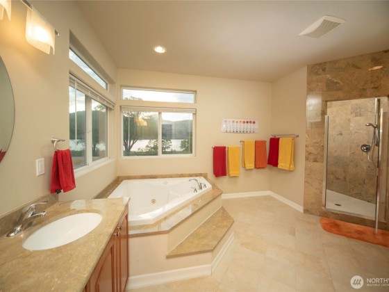 Highly desired home in Sunland! One of the largest custom-built located on River Dr. Panorama views of the Columbia River from all 3 floors. Upper floor has gourmet kitchen w/ large granite island, pantry & dining room. Spacious living room w/ gas fireplace plus a family room for games and fun. Middle floor consists of 3 large bed/2 baths & large laundry room. Oversized Main Suite has a beautiful view of the lake from its private balcony and walk in closet w/ large en-suite bath, jetted soaking tub and walk in shower. Basement has a 2nd full kitchen, family room w/2nd fireplace, full bath and 4th bed. Slider leads to the gazebo & b-que area, fruit trees and grass yard. Steps away to the sandy beach where you can relax and enjoy river life.