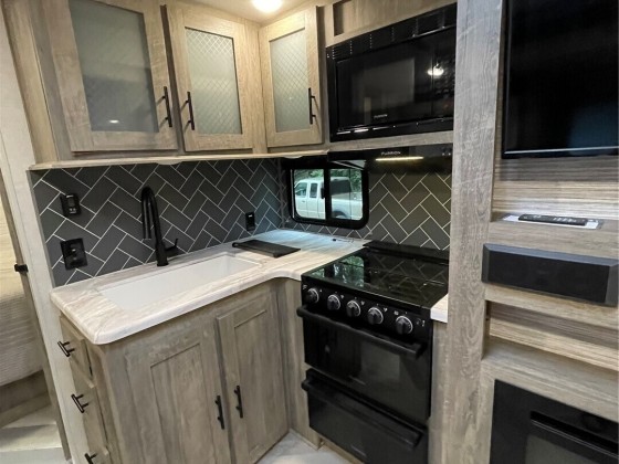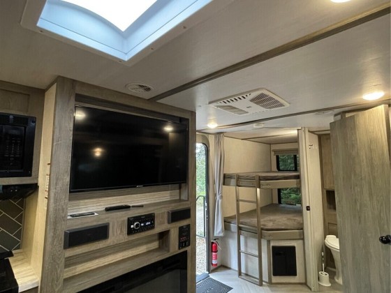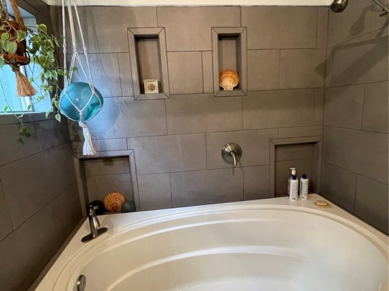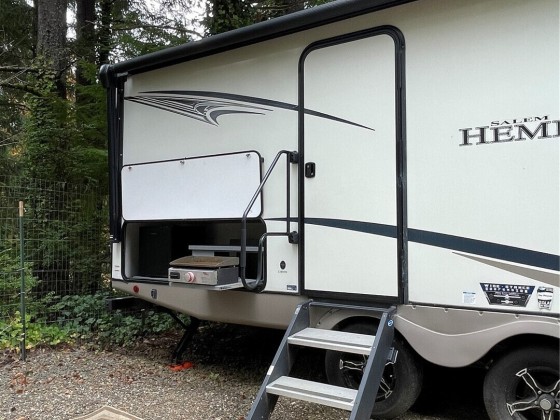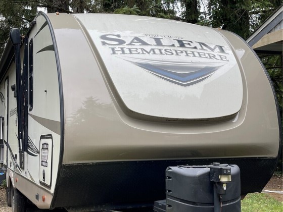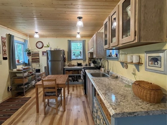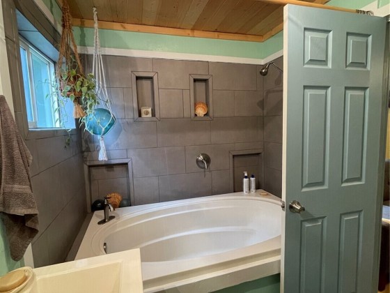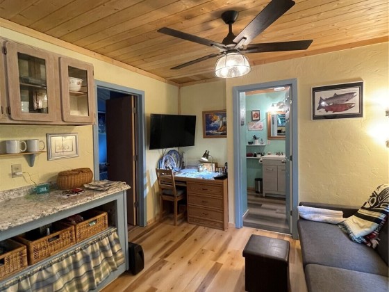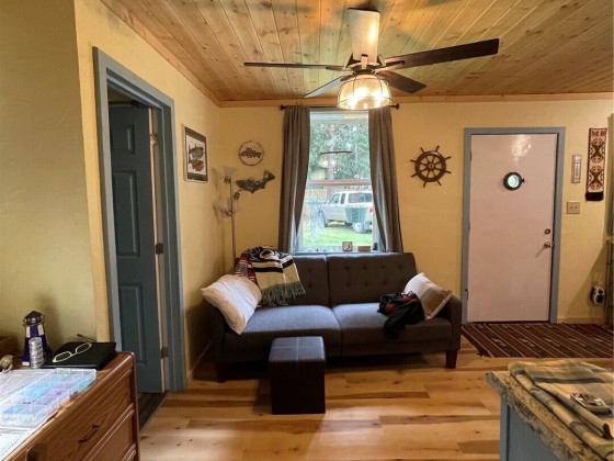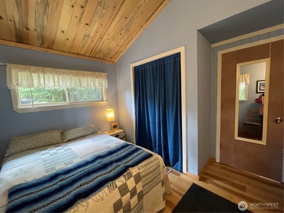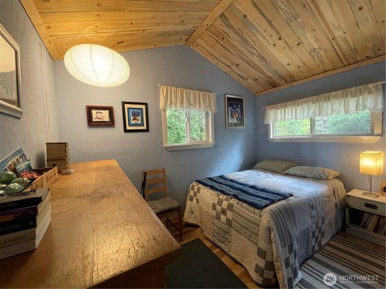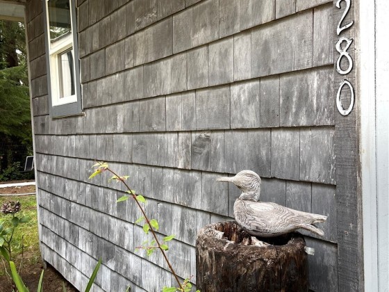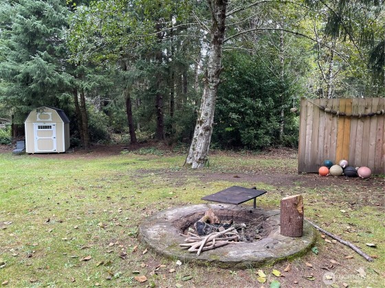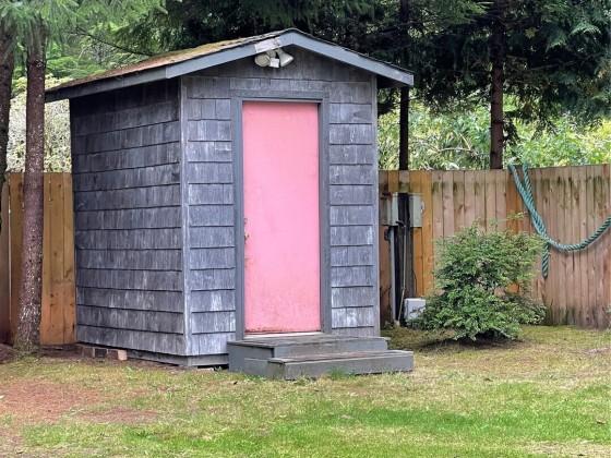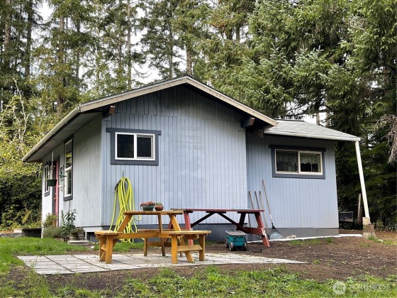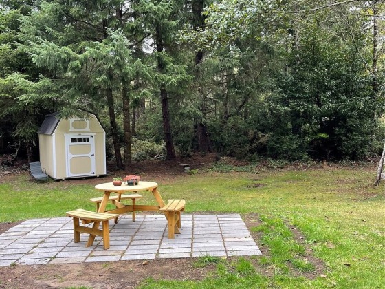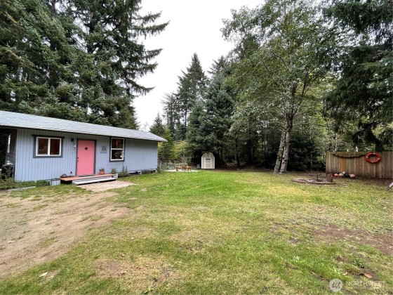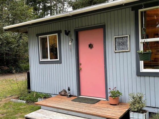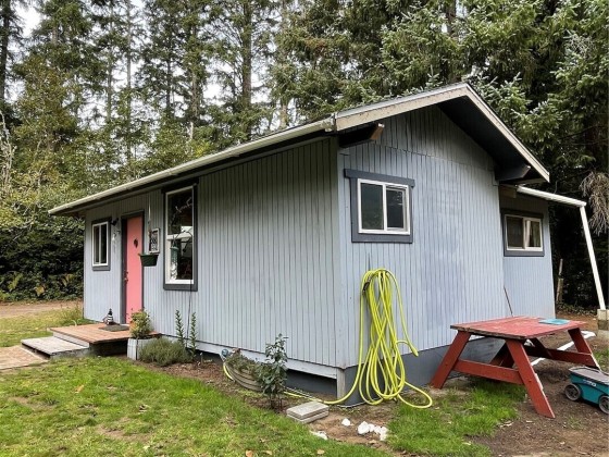 TINY HOUSE, BIG LOT, DOWN A ROAD LESS TRAVELED. On a secluded dead end road in the forest this incredible tiny home shines. Much to offer for low asking price. Double lot room to add garage, newer large shed + storage in pump house. Cedar fence, fire pit, patio, garden, ample R.V. parking area. Beautiful 2021 Forest River 23 ft. R.V. available outside escrow. You'll say Home Sweet Home as you step into this enchanted cottage. Vintage cabin with newer roof had a renovation that transformed it into a comfortable & inviting living space. User friendly kitchen has propane. Plenty of cupboards & counters. Big trees & open space. Park like setting, quiet oasis. Awesome huge soaker tub with tile. W & D. Check out this gem quick before it's gone!!