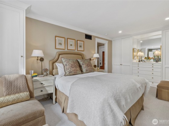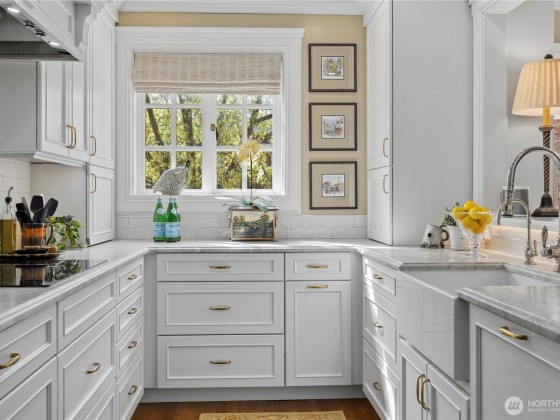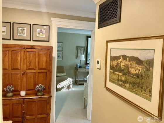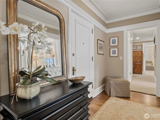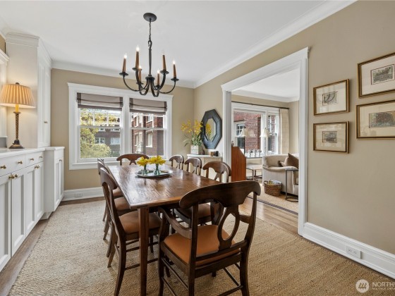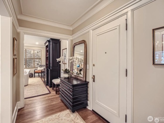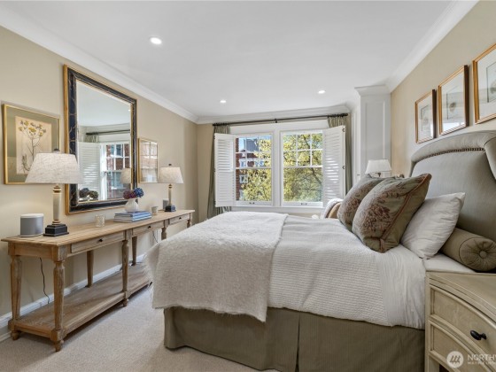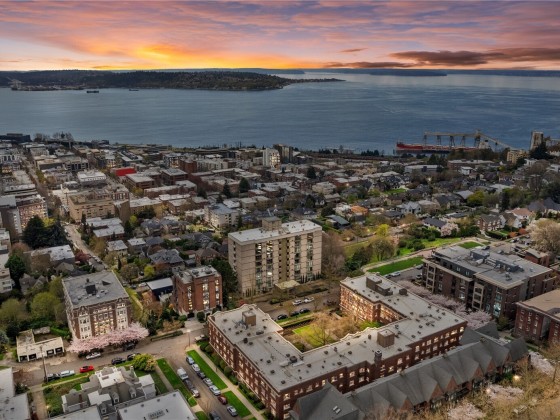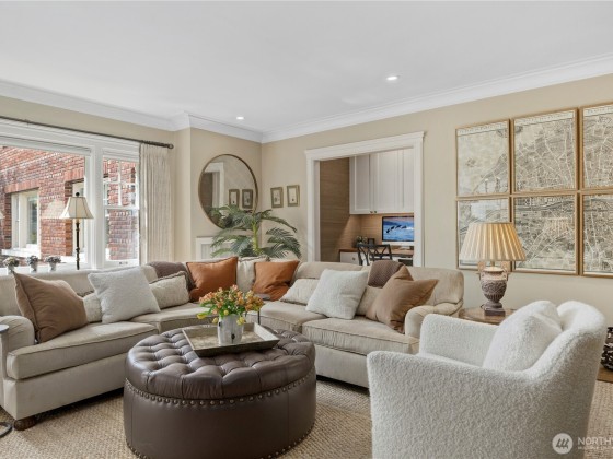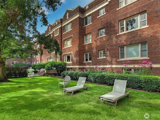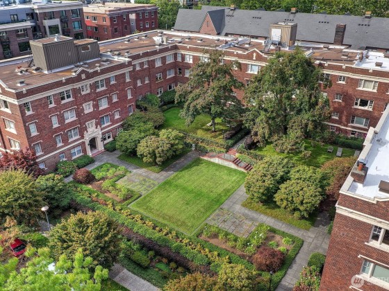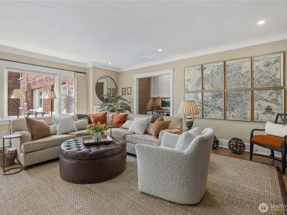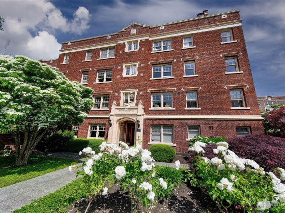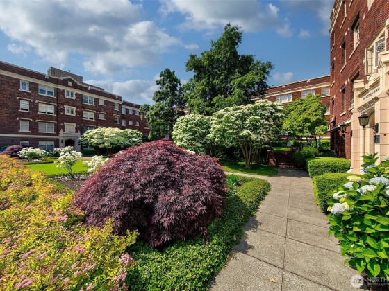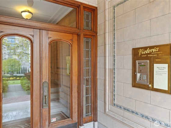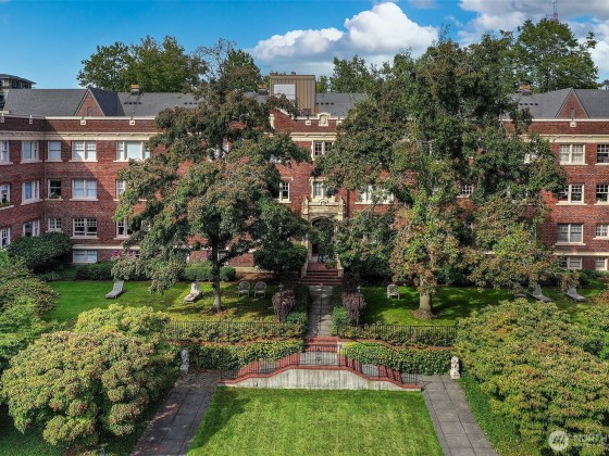 Updated elegance at The Victoria. Enjoy old-world charm with modern convenience, enjoy fully-renovated kitchen- bath & A/C! Located on one of Queen Anne’s most sought-after streets, this quiet 3rd-fl unit (w/ elevator) offers 1,074 sq ft with 9 courtyard-facing windows overlooking beautifully landscaped grounds. Gracious living & dining rooms, custom millwork, hardwood floors. Meticulous remodel includes chef’s kitchen with Sub Zero, Wolf induction cooktop, steam/convection & speed ovens. Stunning Calacatta marble bath w/ heated floors, walk-in rain shower. Large primary bedroom with custom built-in closets. Designer home office. In-unit washer/dryer. 1pkng,1 storage. Steps from iconic Kerry Park, near Amazon, Queen Anne shops & dining.