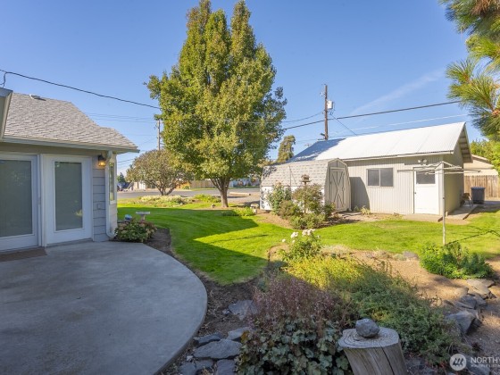 Charming 3 bedrooms 1.75 bath home on a desirable corner lot that is well landscaped! Enjoy plenty of room both inside and out, with a spacious kitchen featuring a beautiful bay window, cozy breakfast nook, and convenient built-in desk area. The property offers abundant parking with driveway and side parking by the detached 24x24 garage/shop complete with a concrete floor—perfect for projects, storage, or hobbies. There is also an additional lawn and garden shed, generous garden space, and relaxing patio area with covered side patio, ideal for outdoor entertaining. The primary suite includes a walk-in closet and a private bath with a stall shower. A wonderful home with space, comfort, and versatility!