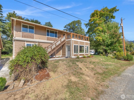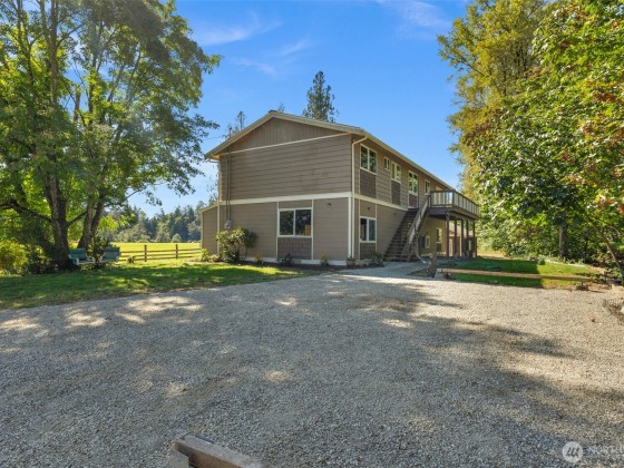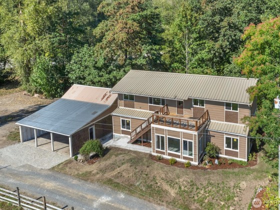 FISH ON!! Approximately 150 feet from the Stilly. Easy commute to I-5 and only 4 miles from the Arlington bridge. Outbuildings include a 3 car garage and dry storage. Level lot backs to the White Horse Trail then just feet from the Stilly. Huge building lower floor perfect for winery or craft beer room, day care, or a gym. Wide open spaces plus a plant room. Huge view deck and there are views in every direction.
