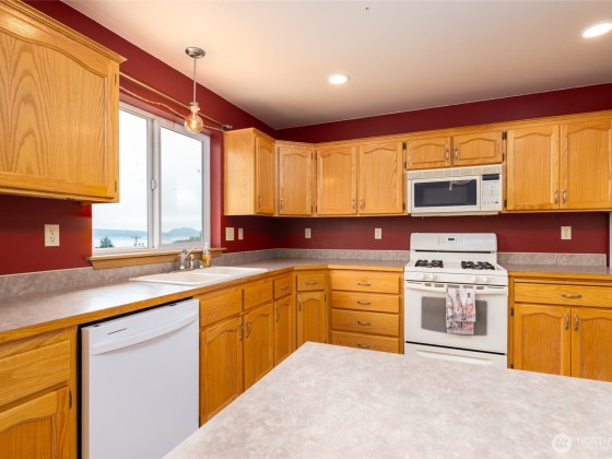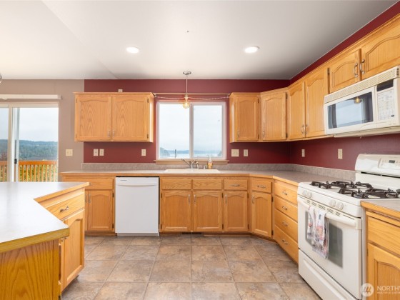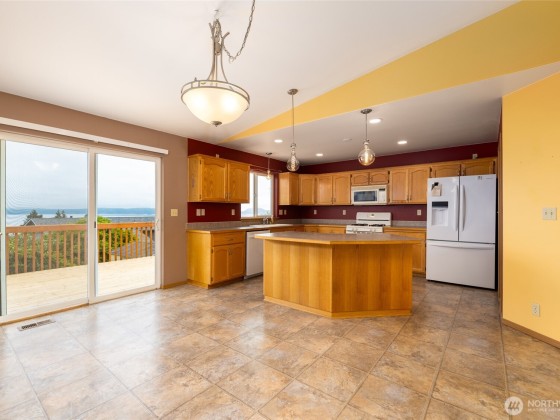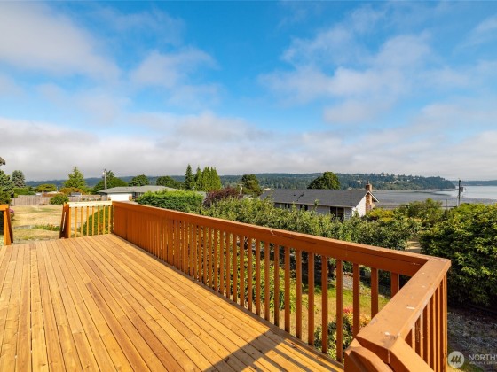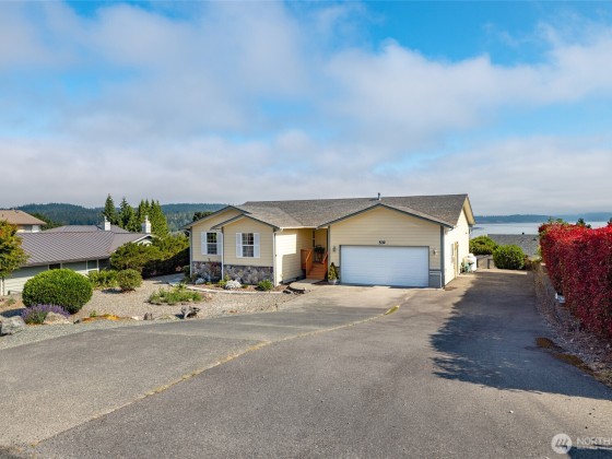 Come take in the expansive ocean and mountain views in this 3 bedroom home sitting atop the quaint Dugualla Bay community just north of Oak Harbor. With a bright and spacious living room and kitchen area, there is lots of room to entertain or enjoy the peacefulness this home offers. Open kitchen includes tons of counter space and walk-in pantry. Vaulted ceilings and access to rebuilt deck finishes off the dining and living room. Primary suite complete with dual sinks and private gas fireplace. Outside find a roomy deck, sizeable shed, and plenty of driveway and RV parking. Community comes with private clubhouse, boat ramp, and beach access just down from the home. Don't miss out on this beauty and the views it offers.