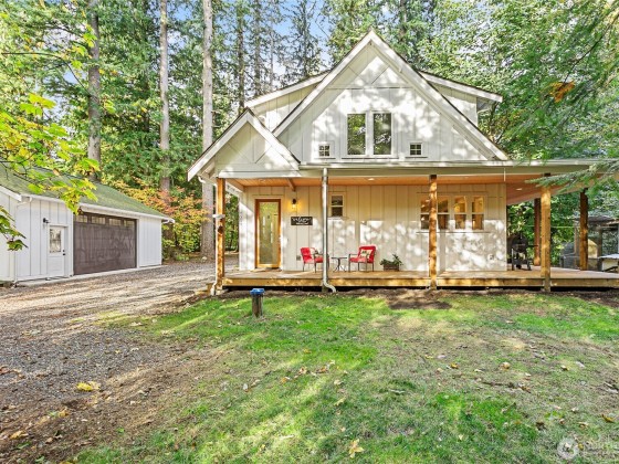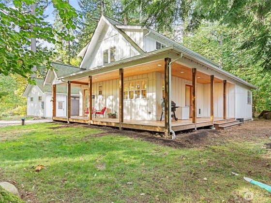Welcome to your peaceful oasis! This custom-built home boasts a covered wrap-around deck to enjoy! Walk into the large entryway w/closet. Enjoy the beautiful kitchen w/tons of natural light, stainless steel appliances, cabinetry w/inset doors, massive island w/concrete countertops & seating! The dining room is open to the kitchen & living room for easy entertaining. Gorgeously refurbished 100 yr-old fir floors throughout most of the main level! The primary bdrm is quite large w/walk-in closet & primary bath w/walk-in tile shower! All of the main level has 9' ceilings. Upstairs you'll find 2 large bdrms w/walk-in closets, fun family room & full bathroom. The 32'x26' garage has 10' ceilings - shelving and workbenches. Rv Space & room to roam!