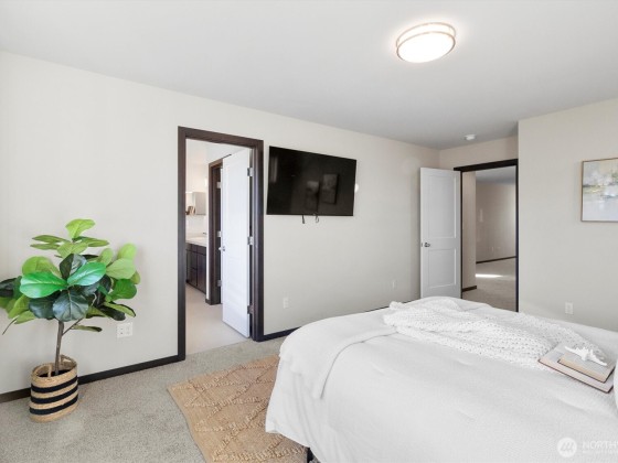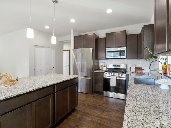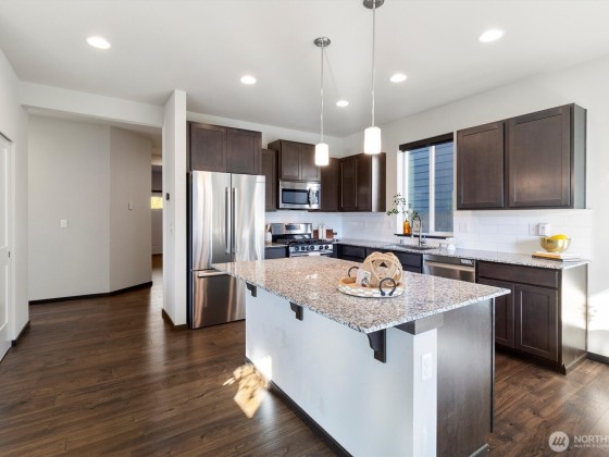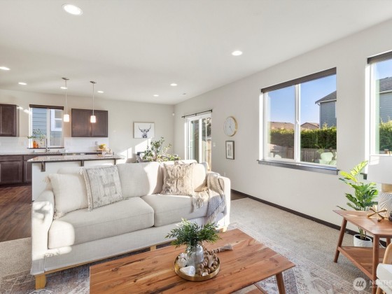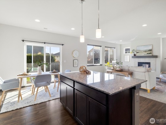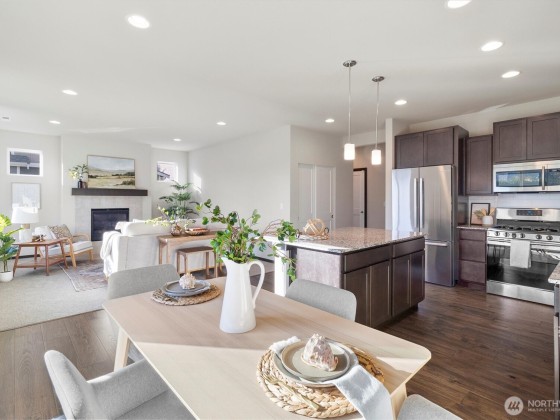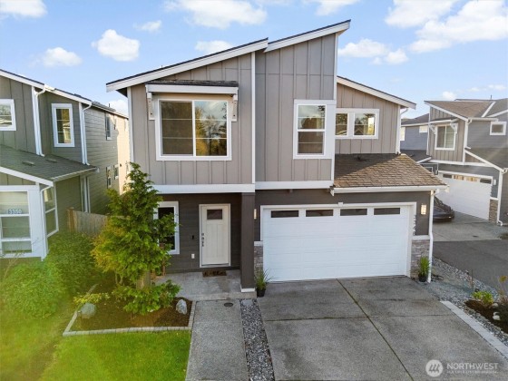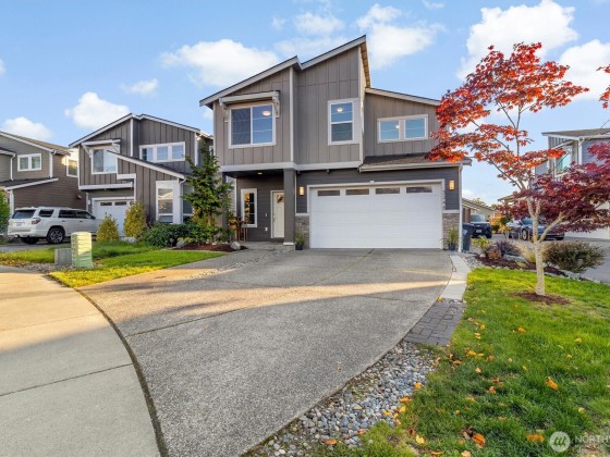 This stunning 5-bedroom, 2.75-bath home offers modern comfort and style in a quiet neighborhood and perfect location! The open-concept main floor features a spacious kitchen with granite counters, stainless appliances, rich espresso cabinetry, and a large island perfect for entertaining. Enjoy a bright living area with large windows and a cozy gas fireplace, plus a main-level bedroom and bath. Upstairs, a roomy loft offers great flex space and BRAND NEW CARPET throughout adds a fresh touch! The primary suite includes a double vanity, soaking tub, and walk-in shower. The home sits on a low-traffic cul-de-sac and is just minutes from parks, schools, shopping, YMCA, and easy I-5 access.