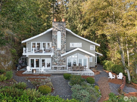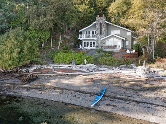 Experience refined waterfront living in Mineral Point, where elegance meets island tranquility. This east-facing, low-bank property with a private beach offers easy access, just steps from your patio to the shoreline for kayaking or beach combing. The main residence features three bedrooms and sophisticated living spaces designed for comfort and style. A one-bedroom guest house sits above the three-car garage, complemented by two versatile studio spaces ideal for art, woodworking, or recreation. Sold turnkey furnished with high-end pieces, this exceptional estate is currently in the process of permitting a mooring buoy and is perfectly situated between Roche Harbor and Friday Harbor for the ultimate island lifestyle.