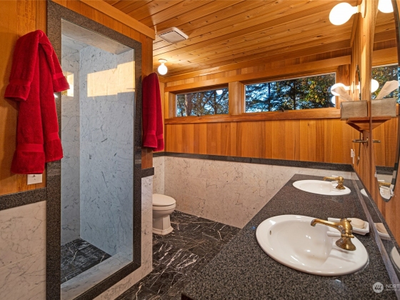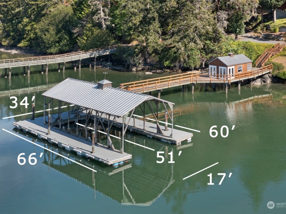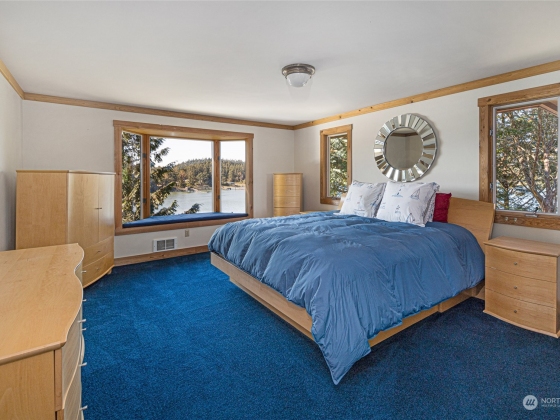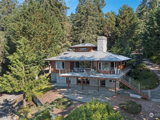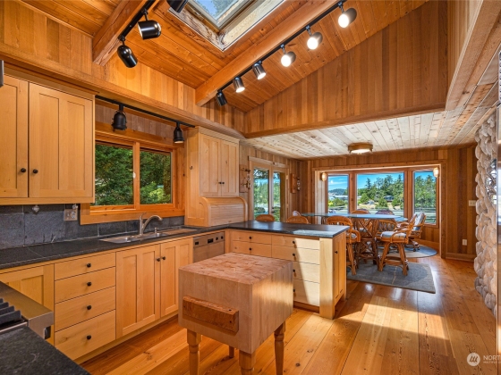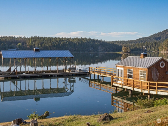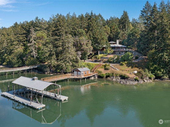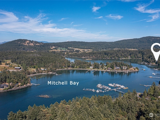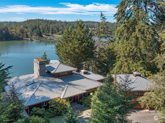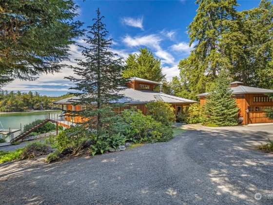 A boater's dream on Mitchell Bay with a private year-round covered dock. Relax in the pier-side casita or on the deck with stunning views of Mitchell Bay, Snug Harbor, Open Bay, and Haro Strait. This 3-bedroom, 4-bath home boasts vaulted ceilings, wood floors, a fireplace, and a chef’s kitchen with Subzero fridge, Viking stove, and soapstone counters. The primary suite includes a jetted tub, steam shower, and double vanity. The lower level features a spacious family room, a guest suite with kitchen and fireplace, and a second guest room with bath all with access to a patio. Extras include a 4-car garage, pickleball court, and covered boat/RV storage. Perfect for entertaining, boating and enjoy the best of waterfront living!