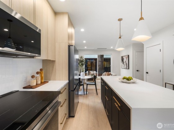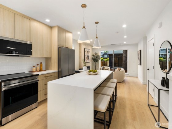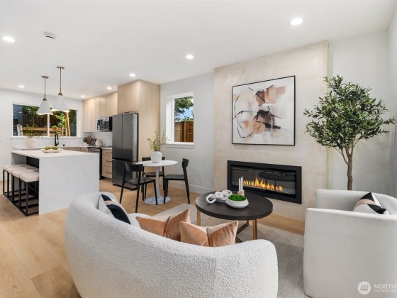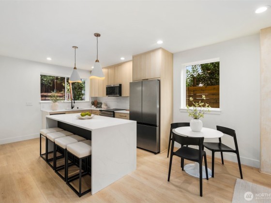 Rare find in the Hillman City neighborhood. Nestled in the back. Has its own 1 car garage and plenty of street parking. Lots of upgrades and features. Open floor plan with abundance of windows. Kitchen with quartz counter tops and full backsplash. Stainless steel appliances. Recessed lighting throughout. Great room concept with dining room and fireplace. Fireplace for those cozy days. Split systems for efficient heat and A/C. Luxury vinyl planks throughout. Dual sinks in primary bath. Vaulted ceilings in 2nd floor. Tile in bathroom floors, walls, tub and shower surround. Check out this modern beauty.