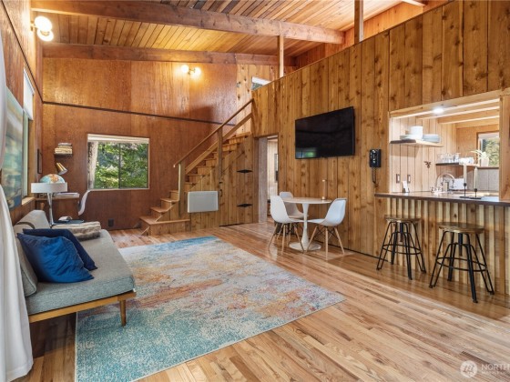 Nestled in the heart of Hoodsport - a short stroll to the community boat dock, this charming cabin captures the best of Pacific NW living. Inside, find an updated retreat featuring an open layout, rich red oak floors, renovated bathroom and kitchen and modern finishes throughout. The cozy interior and thoughtful updates create an inviting atmosphere that feels like home. Step outside to enjoy the spacious deck or gather around the fire pit under the trees-perfect for relaxing after a day on the water or exploring nearby trails. Whether you're looking for a weekend getaway, a peaceful full time retreat, or an Airbnb style investment, this cozy cabin checks every box - charm, comfort, and location all in one perfect Hoodsport Hideaway.