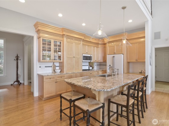 Stunning 2.88+/- acre waterfront estate with 189’ of frontage including tidelands and Mt. Rainier views. Over 6,200 sqft with formal dining, office, and a luxurious master suite featuring a fireplace, private patio, walk-ins, and jetted tub. Chef’s kitchen and living room feature breathtaking water views. Upstairs boasts 4 additional bedrooms and a living room. Entertain in the game room, theater, or expansive back deck with covered cooking area. Downstairs offers separate living quarters—possible ADU. Enjoy a private trail to the beach, mature landscaping, waterfall, and lit sports/pickleball court. A rare blend of luxury and PNW beauty!