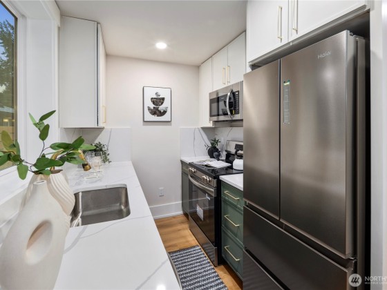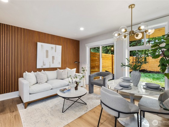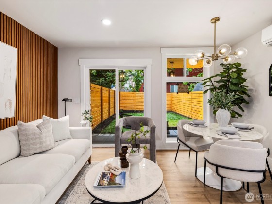 Organic Luxe meets modern living in this brand-new 2BR/2BA townhome in Greenwood/Crown Hill. Sophisticated finishes include wood-slat accents, custom millwork, and a designer kitchen with soft-close cabinetry and stainless steel appliances. The open-concept layout is filled with natural light from the windows, creating a seamless flow from living to dining. Upstairs, a spacious primary suite offers a private retreat with spa-inspired bath. Energy-efficient mini-splits ensure year-round comfort, while thoughtful design details add warmth and style throughout. Nestled near top-rated schools, Ballard’s vibrant breweries, Green Lake, parks, and direct transit to Downtown & SLU, this home blends everyday ease with timeless design. A Lifestyle!
