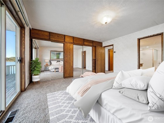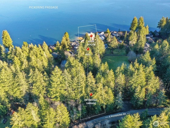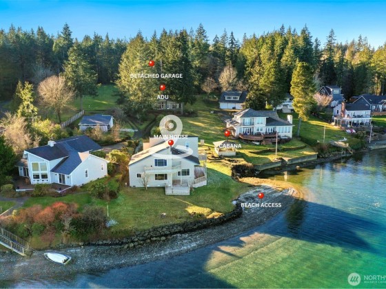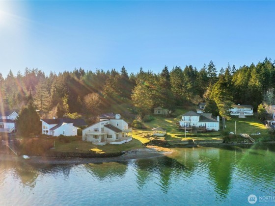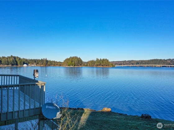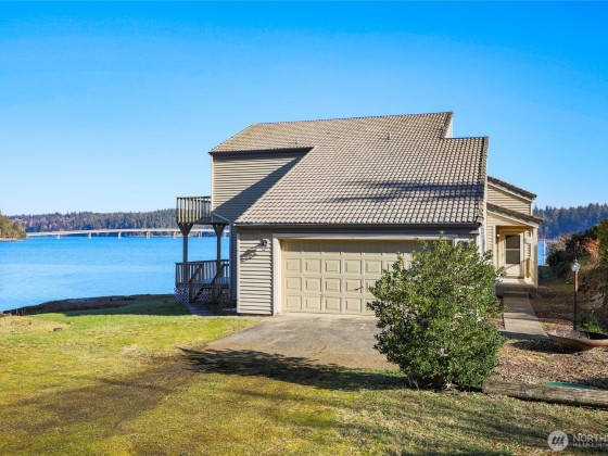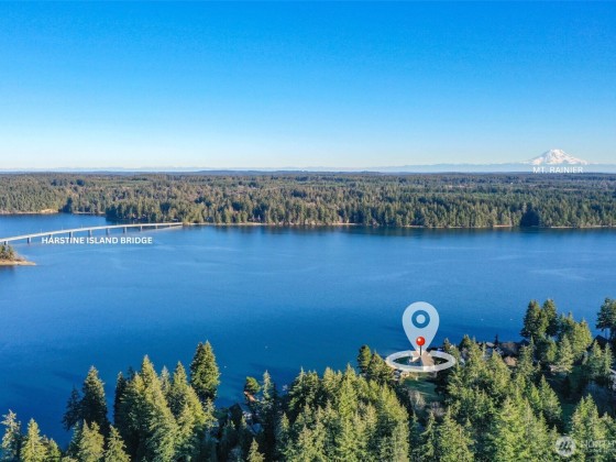 The perfect setting, nestled on the tranquil low & no bank shores with tideland rights, this breathtaking property offers a rare opportunity. Waterfront views from every angle, and a stunning panorama highlighting the bridge leading to Harstine Island. The main house allows one level living with the primary & laundry on the main, and an extra bed, office & bonus upstairs. The separate ADU features all main-level convenience, ideal for extended living, or income. The views provide a constant source of beauty. The Barn shop offers ample space for a boat RV, projects, or even a workshop. This property could provide income 4 streams if you rented the house, ADU, barn and tidelands. Let others help you pay for your dream location.