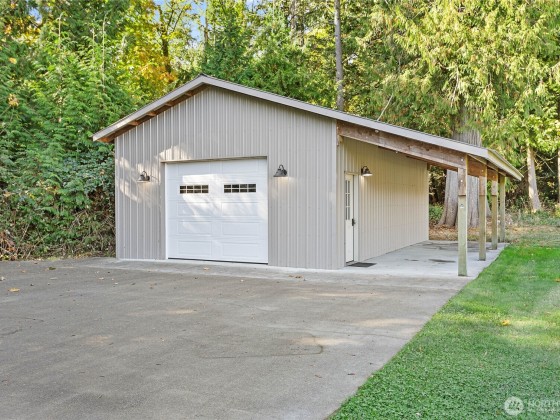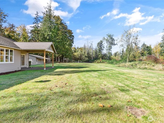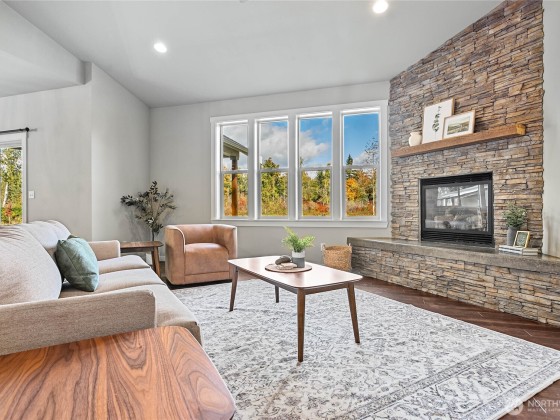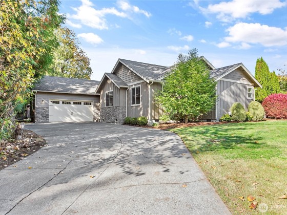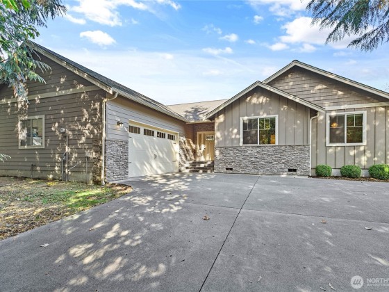 Tucked away on a private asphalt drive, this well-kept 2,100 sq. ft. single-level home offers 3 bedrooms, 2 baths, and a flexible den/office space. Enjoy a spacious open layout, 9' ceilings, granite counters, knotty alder cabinets, stainless steel appliances, pantry, and a cozy stone fireplace. Smart home features include a Wi-Fi thermostat and energy-efficient heat pump & tankless water heater. The luxurious primary suite includes a gorgeous bath. With upgraded windows and a heat pump ensure year-round comfort. Relax on the covered patio with peaceful views of the adjacent nature reserve. 24x36 shop and sports court too!
