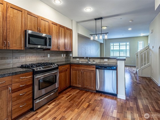 Perfect lock it & leave it lifestyle! Close to the Arts District, UW Tacoma Campus, Brewery District & commuter station. Enjoy high ceilings, bright and open floor plan with tons of natural light. Curl up in front of the fireplace on cool NW days or relax on the private patio and catch the summer breeze. Kitchen has room for all your cooking needs with tile counters, lots of storage space, pantry, pendant lighting and more! Two bedrooms upstairs each with their own full baths attached. Primary Suite has vaulted ceilings & two closets. Park off the street in your own garage, high ceilings offer great storage options for the kayaks & bikes. Close to great eateries & shopping.