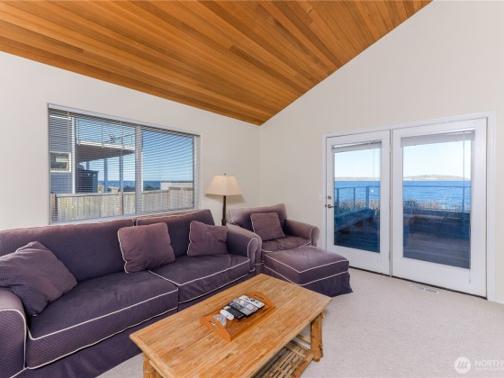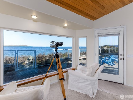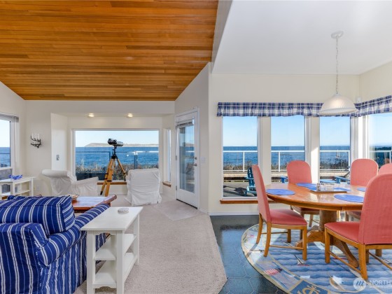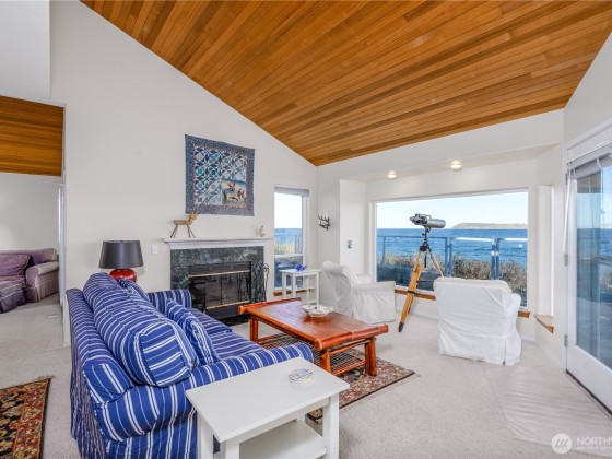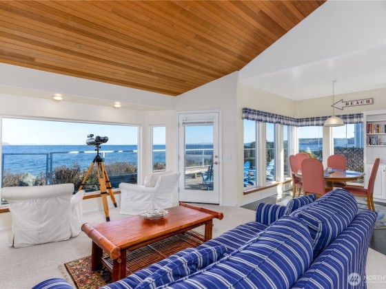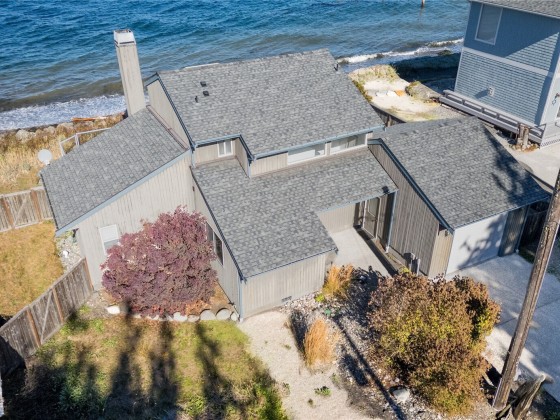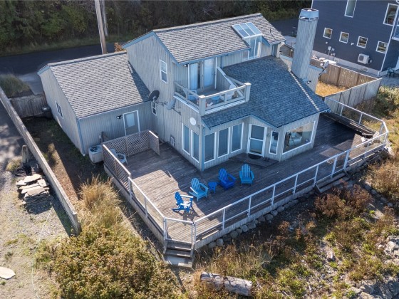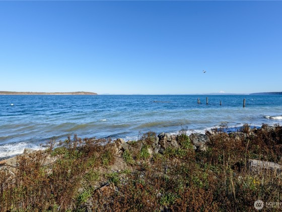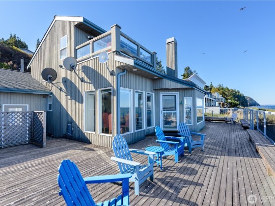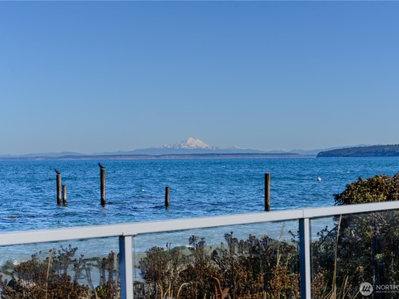 Own your own beach! This rare, no-bank waterfront home on the Strait of Juan de Fuca is move-in ready and features spectacular, panoramic views of the Strait, Protection Island, Mount Baker, and the shipping lanes from nearly every room. A recent investment was made into an engineered and permitted bulkhead for longevity and peace of mind. The freshly painted, 2-bed/2-bath contemporary boasts custom touches like Corian counters, a heat pump, and all appliances. The luxurious primary suite is a true retreat, offering a sitting area, large ensuite bath, and a private balcony. Multiple expansive decks for watching marine wildlife and passing ships. . Situated near beautiful Miller State Park—offering miles of hiking and bike trails.