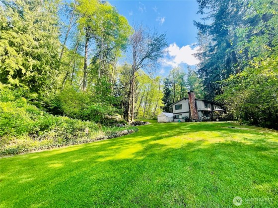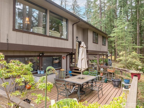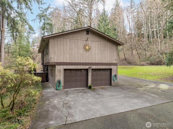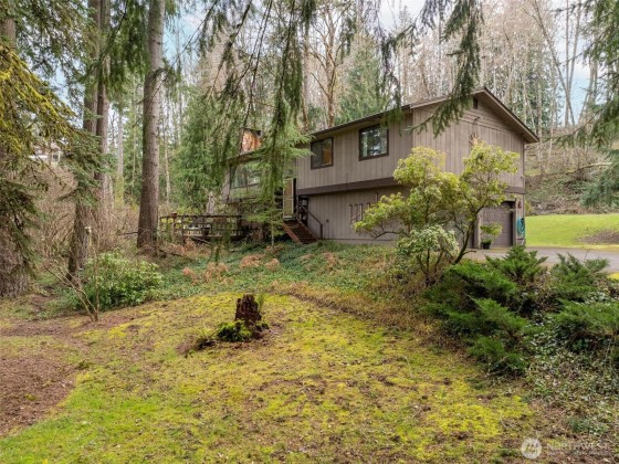 Private Oasis just minutes from town! Unwind and enjoy the outdoors in this private setting surrounded by a lush greenbelt type backdrop. The split-level layout offers a spacious feel with multiple living areas, including a large bonus room and den/office. 3 bedrooms and 3 baths provide ample living space, while fireplaces on both levels add a cozy touch. Step outside and find lots of options for outdoor living in this quintessential PNW woodland setting. All new 40 yr roof in 2018, large deck in the front, RV parking, huge well-maintained yard and covered deck off the breakfast nook allow for outdoor entertainment and relaxation, and local wildlife viewing no matter what the weather. Home Warranty provided!