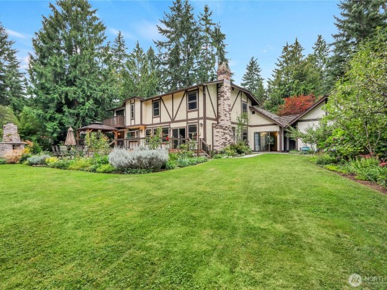 And you were told that UNICORNS did not exist. Ideally positioned within a mile of top schools & neighborhood parks, 10 minutes to light rail & shopping— this John F. Buchan Tudor blends timeless design with everyday convenience. The formal entry leads to a gracious living room with a stately fireplace, while the formal dining room opens to the back deck, perfect for indoor-outdoor entertaining. The kitchen offers a garden window overlooking the park-like backyard, a cozy breakfast nook, & adjoining great room w/fireplace. A den, powder & rec room w/built-in bar complete the main level. Vaulted ceilings with cedar, exposed beams & oak hardwood floors bring character. Enjoy the outdoors at home & a 4 car garage and a shop for hobbies.