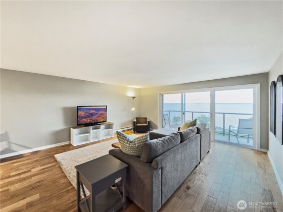 What a View! This spacious 2-bedroom, 1-bath condominium features approximately 1,470 square feet of living space. Perched above Boulevard Park, it offers stunning views of Bellingham Bay and year-round sunsets. The unit features a den, engineered hickory hardwood floors, stainless steel appliances, added sound reduction to the walls, and a recently upgraded Miele washer and dryer. Located along the trail to Fairhaven and downtown, the building—Spinnaker Reach—has undergone a $4.3million exterior renovation, including new siding, windows, balconies, elevator, and roof. Amenities include an outdoor pool, game room, sauna, barbecue grills, and coin-operated laundry facilities.