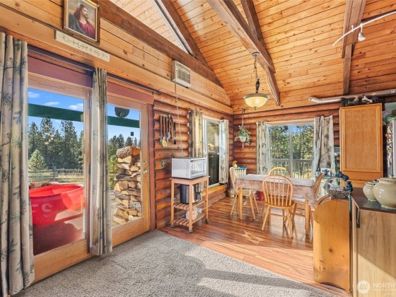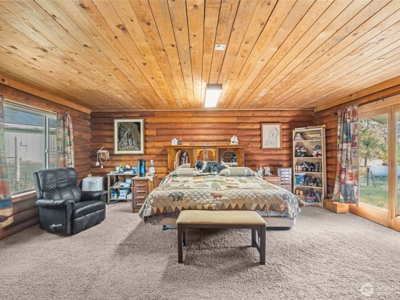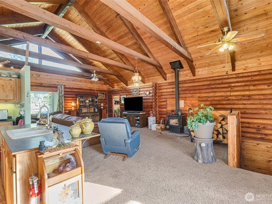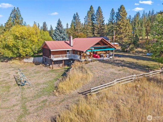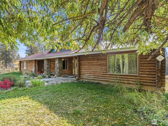 Here is your chance at a cabin in the woods! Beautiful log cabin nestled on 25 acres that can possibly be demised into 5 acre lots. Home offers an open layout on the main level with 2 generous size bedrooms, bathroom, wood stove, a deck off the hall and patio off the kitchen. The finished daylight basement offers 1 bedroom, 2 bonus rooms, bathroom and a large family/rec room. Property offers plenty of room to roam, a chicken coop, fenced yard area, a large 30' x 40' shop, solar panels and leased propane tank. Free standing stove on lower level is plumbed for pellet or propane. This is secluded living at its best while staying close to plenty of recreational destinations and towns.