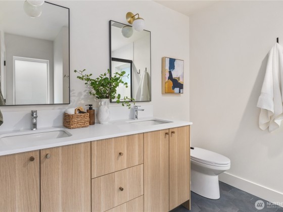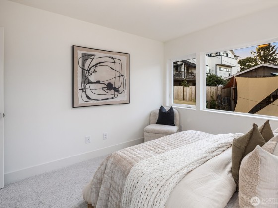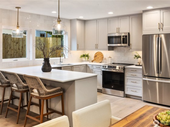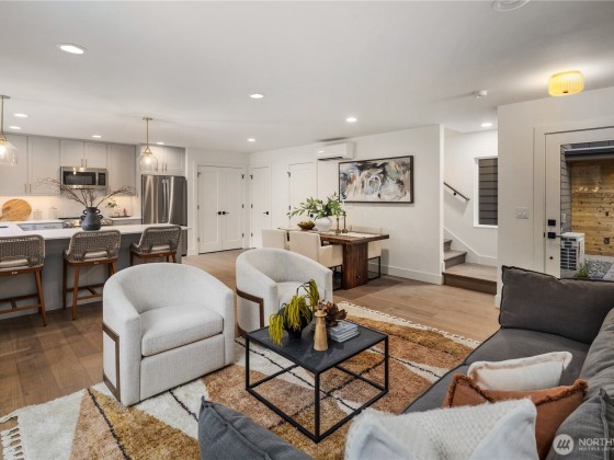 Situated just moments from the Arboretum’s leafy trails, this sleek 2-bed/2.5-bath, stand-alone cottage by Gerry Homes delivers full-sized comfort in a sleek, low-maintenance footprint. Wide-plank hardwoods sweep through an open living–dining layout, anchored by a cook’s kitchen with quartz counters, stainless appliances, and expansive island and access to a private patio and garden ideal for entertaining. Upstairs, the primary suite features a walk-in closet and radiant-heated floors in the bathroom, while the secondary bedroom delivers a light-filled space. Enjoy EV-ready off-street parking, energy-smart mini-splits on each level. Madison Valley cafés, bistros, and Arboretum trails lie moments away—modern style meets coveted locale.