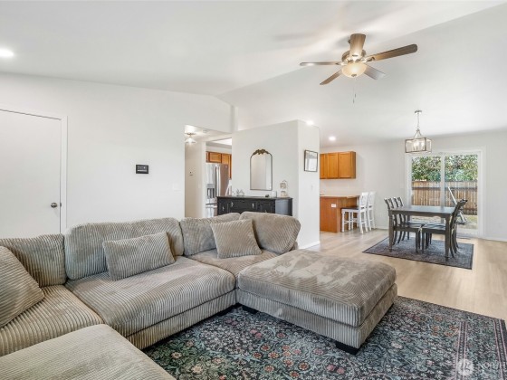 Welcome home! This charming 3-bedroom, 2-bath rambler offers an open layout with vaulted ceilings and tons of natural light. Enjoy a spacious, fully fenced backyard and large patio—perfect for gatherings or relaxing evenings. All bedrooms are generously sized, with the primary suite set apart for privacy, featuring a walk-in closet, ensuite bath, and extra storage. Fresh updates include new LVP flooring, carpet, interior paint, and all new appliances. Great location close to downtown and local schools!