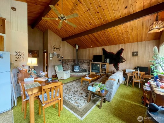 Welcome to this warm and inviting 2BD/2BA Glenhaven home on a beautifully landscaped double lot totaling .38 acres. Nestled on the quiet, cul-de-sac end of Rainbow Dr., a short stroll from the clubhouse, pool, and lake access, it offers the perfect blend of comfort and Northwest charm. The open kitchen and living area feature vaulted wood ceilings, exposed beams, and large windows that fill the space with light. A cozy woodstove and peaceful den add to the cabin-like character, while the spacious deck offers peekaboo lake views. Enjoy sunny yard space with mature landscaping, a 600-sq-ft garage/shop, and 12x24 shed. Ideally located between Bellingham and Skagit County with endless outdoor recreation at your doorstep!