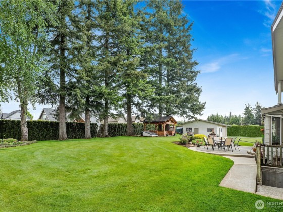 Perched on a hill with partial views of Wiser Lake, this impeccably maintained home sits on two lots with a stunning park-like yard—offering elegance & endless potential! Live in the home while you design your dream estate and build a new custom, convert the shop to an ADU for income or for extended living, or build a spec home. The 2nd lot includes a 26x40 shop + 15x15 addition. 2 water shares included worth $40,000! Upgrades include radiant heated baths, tankless hot water, newer appliances, 50-yr roof, whole house generator & built-in safes. Entertain in the charming gazebo, enjoy the sound system, & savor the peaceful setting. With a Ferndale address, Meridian schools & close proximity to Lynden, this is a rare lifestyle opportunity!