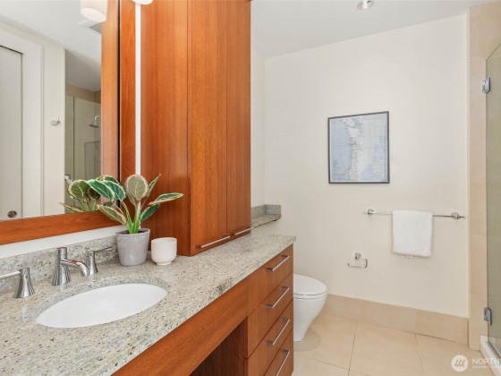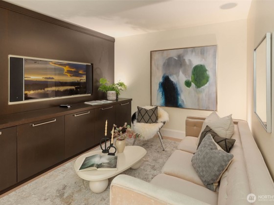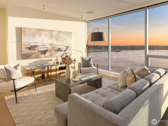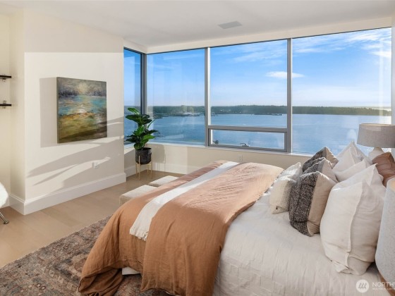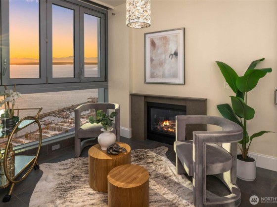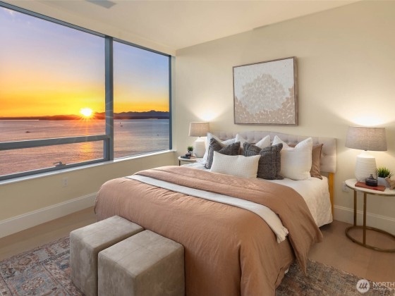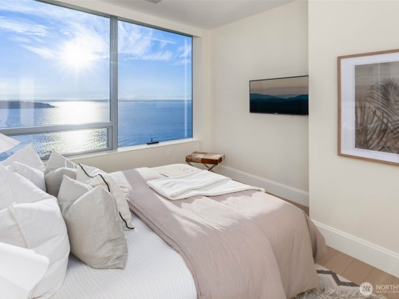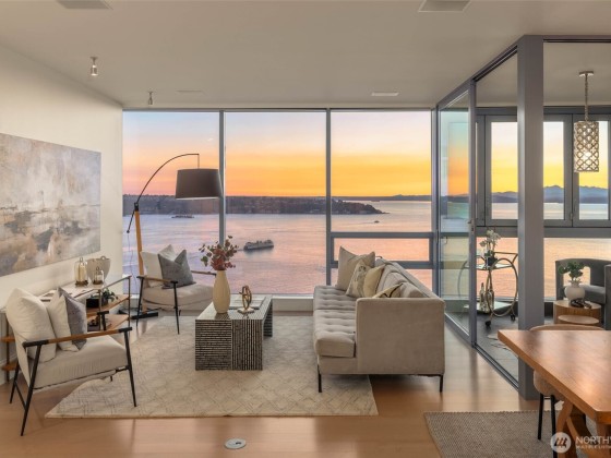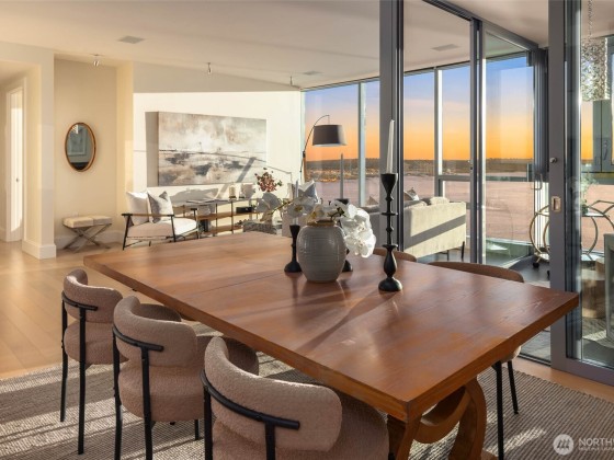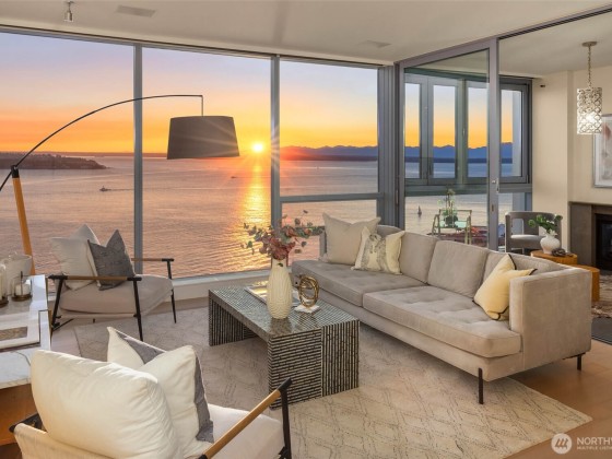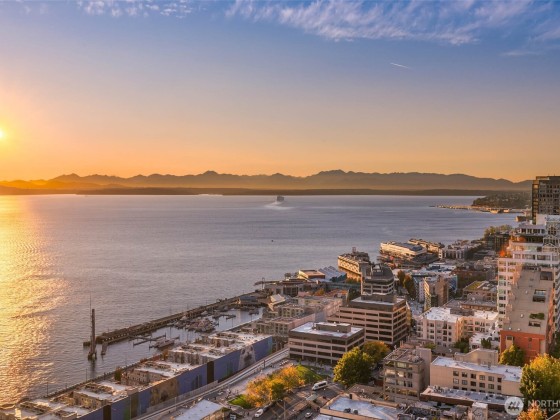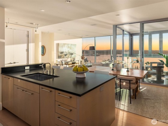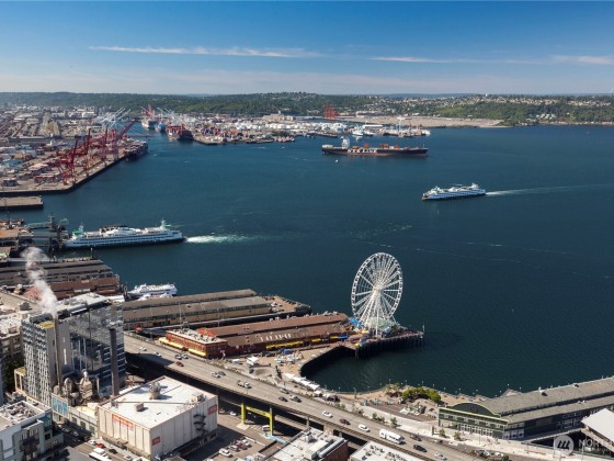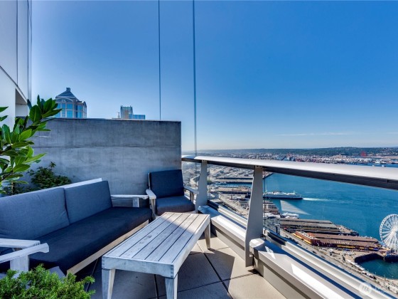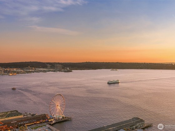With amazing protected views of Pike Place Market, Elliott Bay, Mt Rainier and the Olympic Mountains this home is the perfect setting for entertaining. The open living space flows graciously showcasing the views with an indoor/outdoor solarium bifold that opens to the outdoors. A Chefs kitchen makes cooking for friends a joy! Off the kitchen is a pantry/laundry room with great storage. An added bonus is the separate media room/office/or overflow guest room. Both of the bedrooms have full water views! The primary bedroom offers a Spa bath w heated floors and a large walk-in closet. The second bathroom is off the other bedroom. 24hr concierge, gym, boardroom, yoga, roof top terraces w BBQs, herb garden & Sky Lounge. 2pkg w/EV. Storage room