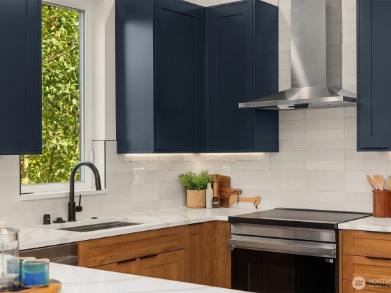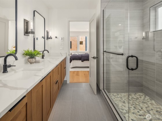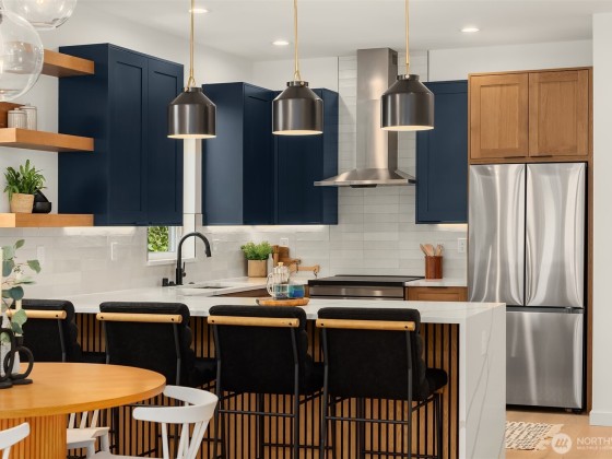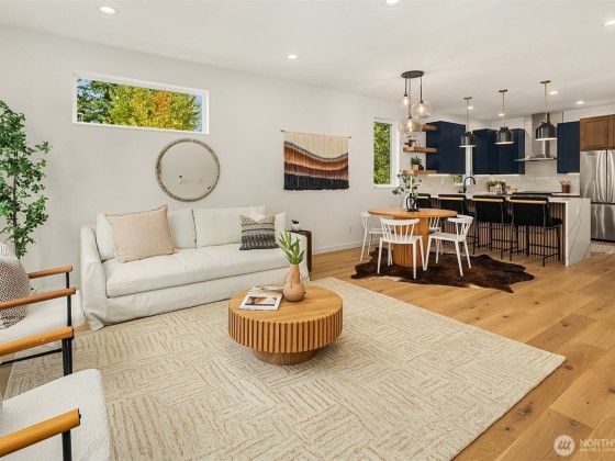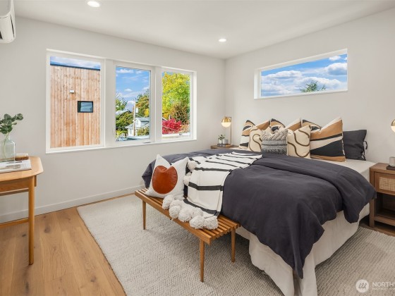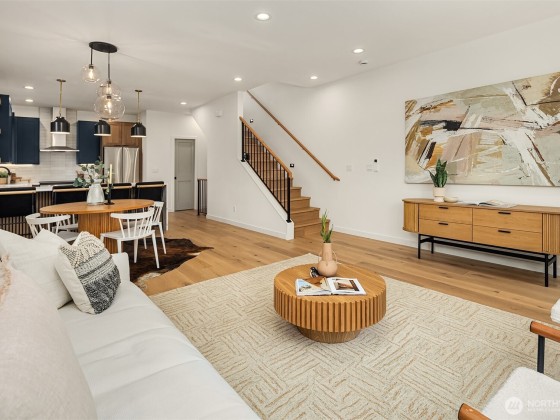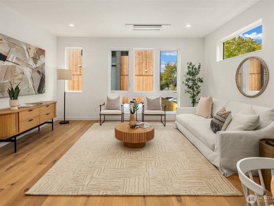 Last home available! Modern design, thoughtful details, and a coveted Wallingford location — this new construction by Ecoworks Homes showcases quality on every level. A bright, open layout with floor-to-ceiling windows and warm contemporary finishes creates an inviting atmosphere. Chef’s kitchen appointed w/ stainless appliances, custom cabinetry, and a peninsula island ideal for entertaining. Entry level offers two spacious bedrooms and a full bath, perfect for guests or a home office. Upstairs, a luxurious primary suite w/ spa-inspired bath and generous laundry room. A rooftop deck with mountain and city views! Fenced yard with patio & designated EV parking space. All just a short walk to Gas Works Park, restaurants, and local favorites!