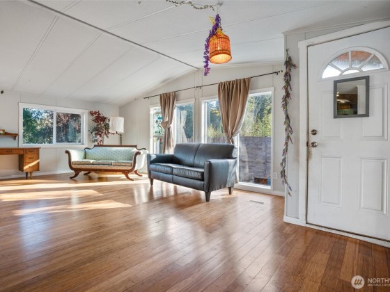 Say hello to your personal slice of Pacific Northwest magic! This delightful 2-bed, 2-bath gem is bursting with character—from the sun-drenched living room thanks to floor-to-ceiling windows that let the light pour in like a warm hug to the dreamy ball and claw tub that’s begging for bubble baths and book binges. Step out back and you’ll find a deck overlooking your private back yard nature made for morning coffee, stargazing, or epic BBQ showdowns. There is even a small bespoke animal pen ready to house your pet goose. All of it tucked into your very own acre of peace, privacy, and potential. The neighbor is selling their lots next door if you wanted to expand your slice of paradise!