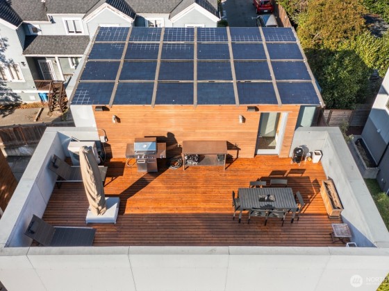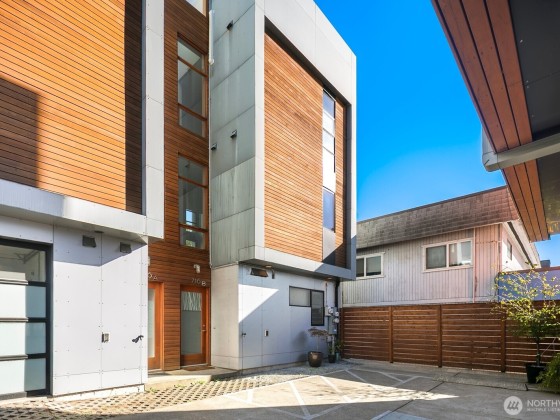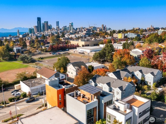 Bold, modern, and design-forward—this PB Elemental townhome in Judkins Park delivers standout architecture with warm materials, clean lines, and flexible space across three levels. Radiant heated concrete floors anchor the open main level, while a dramatic 2-story roll-up window wall creates seamless indoor-outdoor flow. Three bedrooms offer options for guests, work-from-home, or creative space. Rooftop deck brings sweeping views of the mountains and the sound. Solar panels help lower utility costs. Paeking for two cars off-street. Quietly tucked off the street yet minutes to I-90, parks, and the soon-to-open East Link Light Rail. No HOA! Unlike any other townhome on the market!