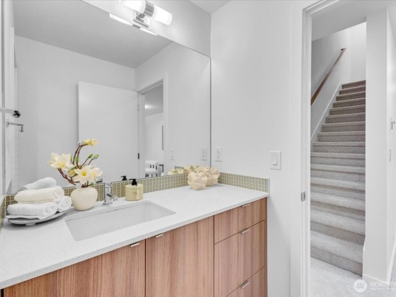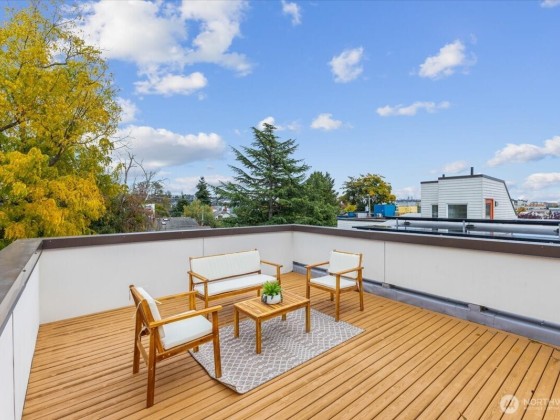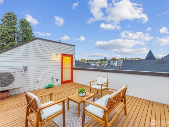 Discover urban elegance in this stunning 2017-built, fully detached 4BR/2.25 BA townhome spanning 1,920 sq. ft. Step into a light-filled haven w/ sleek cedar accents, open-concept living/dining & chef's kitchen boasting quartz counters, SS appliances, an island w/seating for 3. Four generous beds upstairs with WIC's, A primary suite w/spa-like bath, walk-in closet, & dual vanities. Ascend to the sprawling rooftop deck w/ panoramic city/mountain views ideal for sunset soirees, al fresco dining, or stargazing! Low-maint yard w/off-street parking for 2 cars. Top-rated Adams Elem & Ballard High. Walk to Ballard Locks, Golden Gardens Park, Ballard Ave, Sunday farmers market, & D Line light rail! Ballard's at your door step!