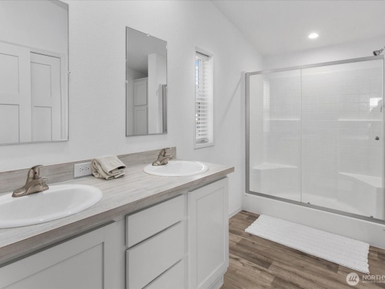 Rare, ALL-AGES Park conveniently located within minutes to Bothell, Kenmore and Lynnwood, as well as I-5 and I-405 for easy commuting! This almost brand NEW 4-bedroom, 2-bathroom home features a desirable split floor plan with vaulted ceilings, recessed lighting, ceiling fans, cordless blinds and craftsman style doors. Light and bright kitchen with tile backsplash, island with pendant lighting and walk-in pantry! Spacious primary bedroom with ensuite bathroom boasting BOTH linen closet and cabinet! Huge utility room and ALL appliances stay! Fully fenced and new Tuff Shed for additional storage! Park offers tastefully updated community club house for residents to use. Northshore school district too!