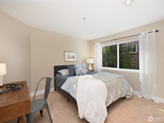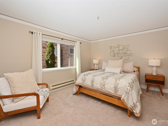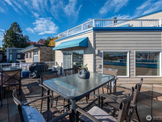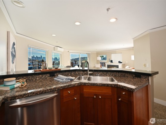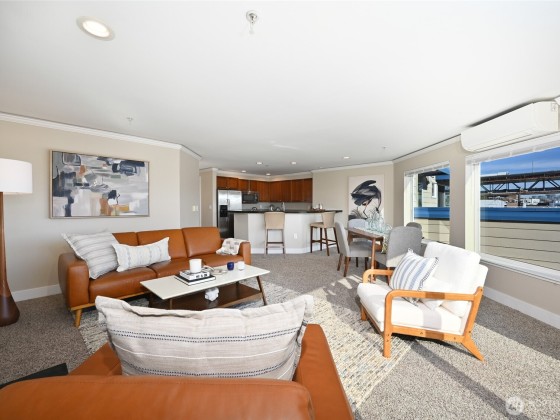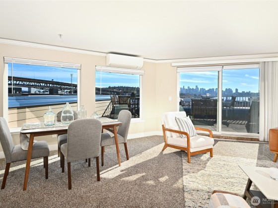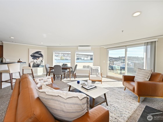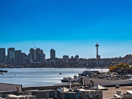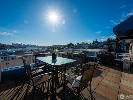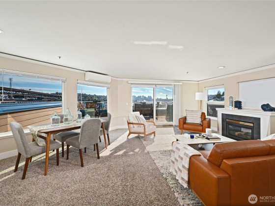 Watch Fourth of July fireworks and Duck Dodge, along with every day phenomenal lake and city views from the spacious deck and wall of windows gracing the open concept living, dining, kitchen! Super convenient...minutes to downtown, steps to Burke Gilman and a short walk to multiple eating/drinking establishments. Kitchen boasts granite counters, Stainless steel appliances and bar seating. Full size in-unit W/D. Main bedroom has walk-in closet and ample attached bath. Secure garage with TWO assigned parking spaces. Great sized complex--only 27units.