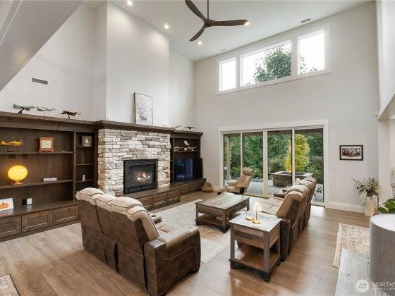 Live luxuriously in this impeccable custom-built home in sought after Stone Creek Neighborhood. Soaring ceilings and expansive windows flood the home with natural light. Effortlessly entertain with thoughtful open concept layout featuring 3,626sf, 5-bedroom, 3-bath, spacious living room w/cozy gas fireplace & massive bonus room. Primary suite on main level includes an exquisite spa-inspired five-piece bath & a massive walk-in closet. Chef’s dream kitchen, complete with high-end appliances, expansive counters, and custom cabinetry, is the heart of the home. This remarkable property features: 1,544sf mechanic dream garage, beautifully landscaped, covered patio w/gas fire pit & greenbelt for privacy to relax. Make sure to check out the video!