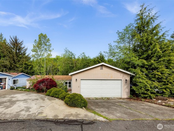 Spacious 1500sqft+ 3-bedroom with 1.75-bathrooms open social floorplan offering 2 living areas & a big primary bedroom w/ huge walk-in closet, front & back decks for outdoor relaxation. Large detached 2 car garage adds storage & convivence. Experience a sense of community where you own the land & the building. Residents have access to a clubhouse for gatherings, social events, low monthly dues. Wonderful opportunity to reside one of South Bellingham's most desirable locations across the street from golfing, lakes, trials, close proximity to shopping, dining, healthcare & other amenities is excellent. New carpet in the bedrooms, new bathroom fixtures, newer heating system & on demand hot water come take a look! 55+ community with exceptions.