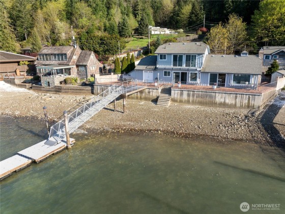 Welcome to this stunning Hood Canal home on the sought-after south shore. Enjoy breathtaking Olympic Mountain views and soak in the late afternoon sun from your private retreat. The open-concept layout is perfect for entertaining, with a recently updated kitchen and bathrooms that blend modern convenience with timeless style. Featuring two spacious primary suites, this home offers flexibility and comfort for guests or multigenerational living. Outside, an expansive dock provides plenty of room for all your water toys. A second parcel across the street, listed separately, includes a guest cottage. This is your chance to own a piece of paradise—schedule a tour today!