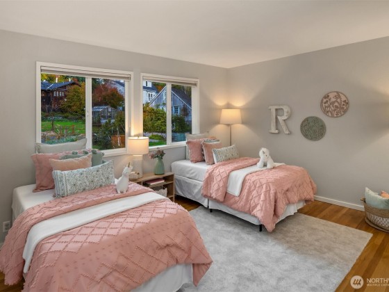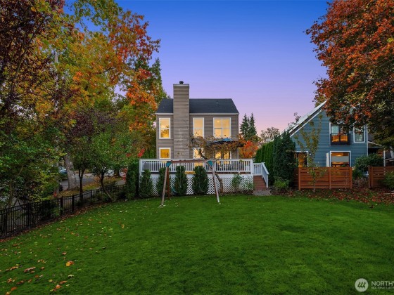 Beautifully maintained NW modern on enviable corner lot in Montlake's Arboretum. The main level features a grand, open floor plan ideal for daily living and entertaining anchored by a chef's kitchen/great room with modern styling. The dining space opens to a spacious deck and attached, deeded, shared lawn, which is fully-fenced, offering a private-park-like setting. The upper level is highlighted by a primary suite and bath with double-sink vanity and ample closet space. Two additional bedrooms and shared bath offer an ideal upper level layout. Rare, two-car garage with new door/equipment, ideally situated near the Arboretum and just blocks from the Madison Valley shops and restaurants.