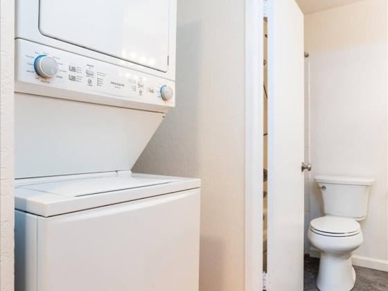 Spacious, light-filled top-floor corner unit in a prime location! This one-bedroom, one-bath condo features an open layout plus a separate bonus room near the elevator- perfect for a home office or extra storage (shelving included). In-unit washer and dryer for your convenience. Enjoy the sunshine from your private patio or the abundant natural light in the primary bedroom. Just 5 minutes from the light rail and close to the ferry, shops, and parks, this move-in-ready condo combines comfort, flexibility, and value- all with low HOA dues under $500/month.