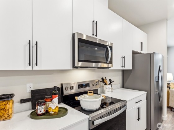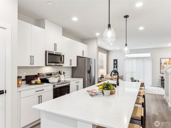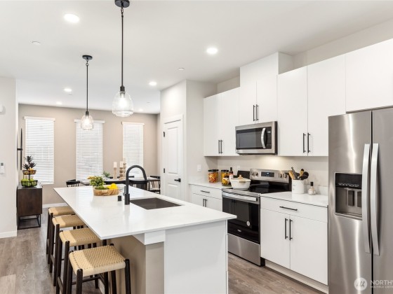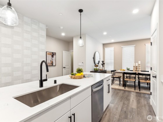 Welcome to Ivy Terrace! Located in the heart of Lynnwood near to schools, convenient shopping centers, dining and entertainment options. Everything you need is within easy reach! The 4-bedroom Addison plan has all the space you need! Enter on the ground level featuring a spacious en-suite for guests. High ceilings and huge windows enhance the main floor including central chef’s island kitchen with seating, bright dining room, and open great room that leads to deck overlooking fenced yard. The 3rd floor provides functionality with a luxury primary ensuite, 2 sizable bedrooms, full bath & utility room. You’ll love the white cabinets and modern matte black accents! Don't miss the community park and sports court!