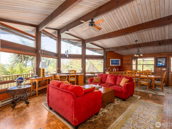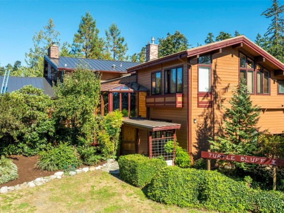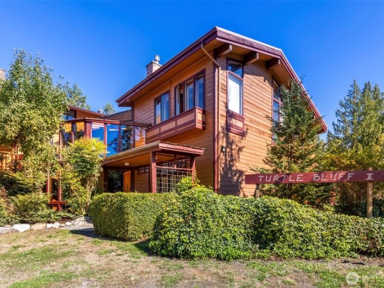 A breathtaking Island Waterfront Retreat awaits you at Turtle Bluff II on stunning Marrowstone Island: 10+ acres, +/- 660 ft of waterfront, and a wonderfully imaginative home. The perfect setting for a generational estate with garden spaces, wooded groves, outdoor entertaining spaces, and a home that memorably greets guests with a soaring entry atrium complete with a Koi pond. New metal roof, new exterior paint. Explore the multiple levels, enjoy the varied western views of Puget Sound and the Olympics, and relax on the expansive deck while surveying your gardens. Add a Waterfront view trail, spacious Greenhouse, RV parking, BBQ party area, and much more. Income potential abounds with private bedrooms perfect for short or long-term rentals.